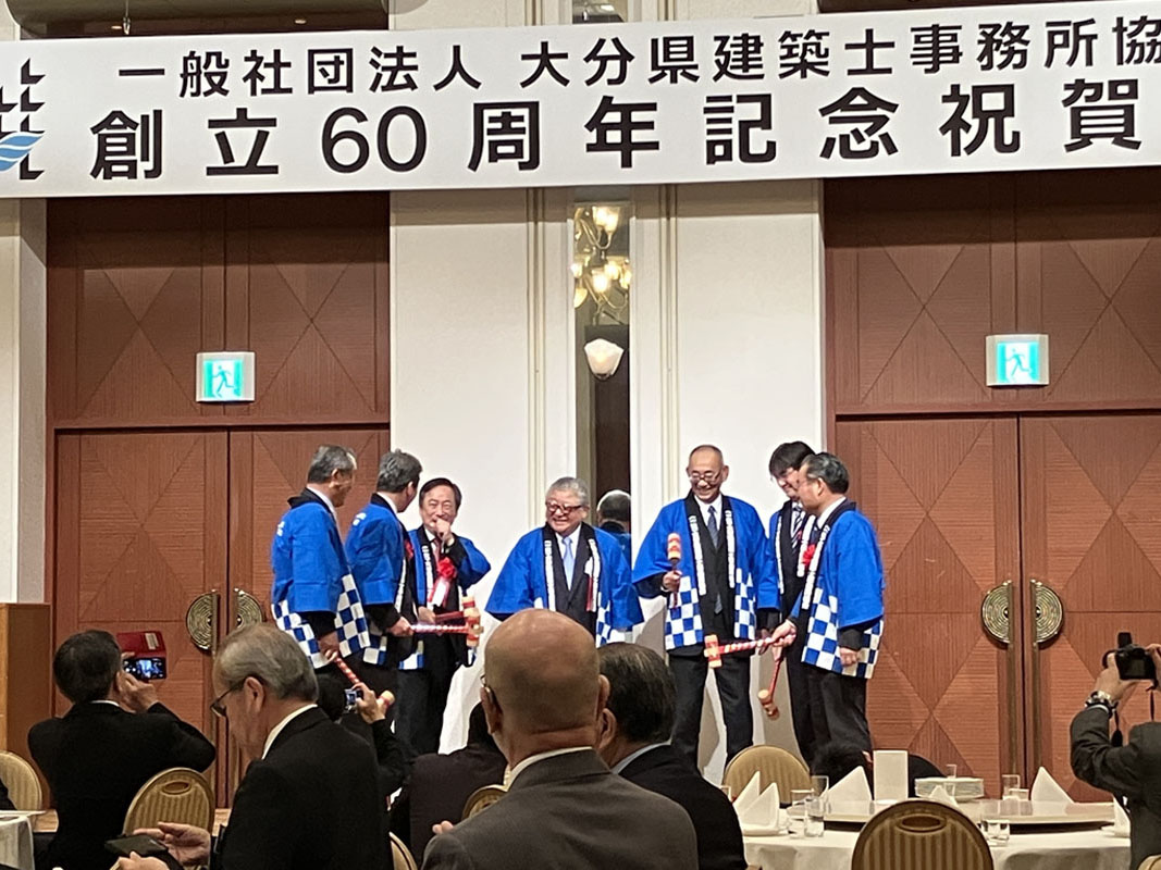 去る2026年2月27日、ホテル日航大分 オアシスタワーにて記念式典が開催されました。式典を彩る各種アイテムを栄工社で制作させていただきましたので、ご紹介いたします。